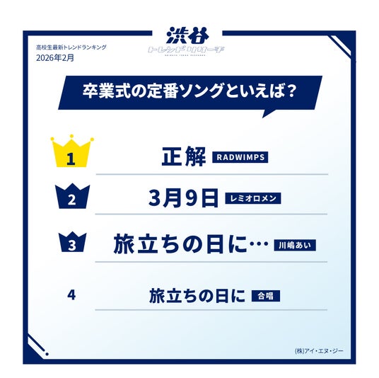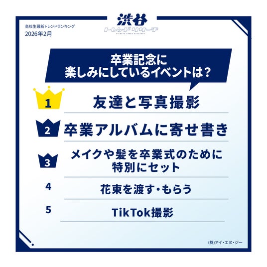【イマドキ高校生の最新!卒業シーズン調査】卒業式の定番ソング&卒業式の定番イベントTOP10を発表!今月のネクストトレンド「カウボーイコア」とは?高校生の最新トレンド2026年冬!渋谷トレンドリサーチ
