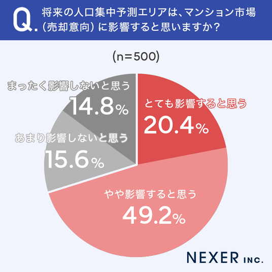 最後に、将来の人口集中予測エリアがマンション市場や売却意向に影響すると思うかを聞いてみました。