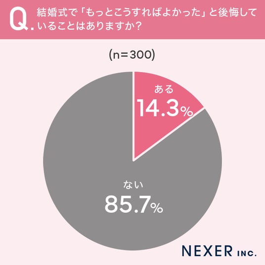 ■14.3%が、結婚式で「もっとこうすればよかった」と後悔していることは「ある」