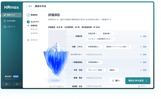 「HRmax」は、8,000社・500万件以上の面接データを学習した独自アルゴリズムを搭載し、表面的なスキルだけでなく「思考力」「協調性」「学習意欲」などの潜在的能力まで可視化できるAI面接サービスです。学習データに基づく評価基準により、面接官ごとの主観差を抑制し、より一貫性のある評価・判断を可能にします。