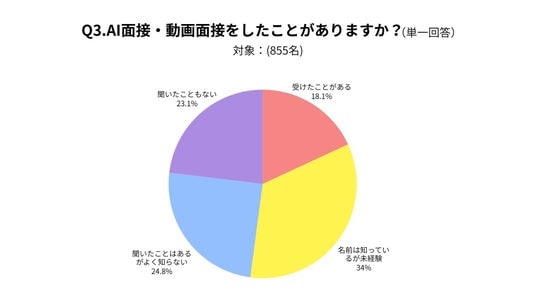 一方で、「名前を知っている・聞いたことがある」と回答した人は約6割にのぼり、AI面接の認知は着実に広がりつつあることが分かりました。