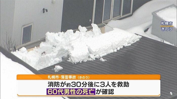 2月18日、北海道・札幌市で落雪事故が発生、1人が死亡しました。