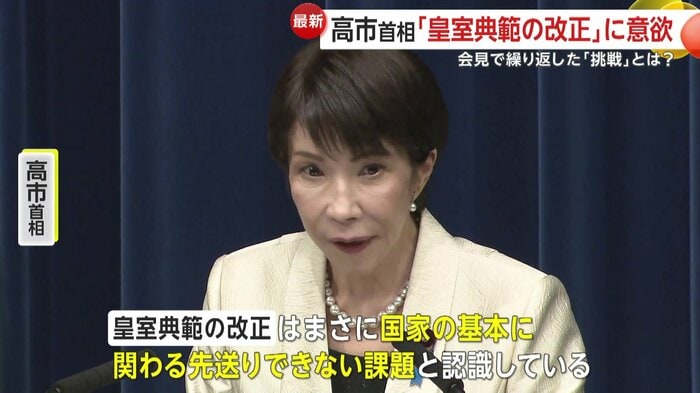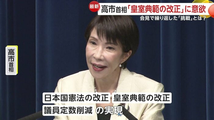 高市首相は挑戦の具体的な内容について、「日本国憲法の改正、皇室典範の改正、議員定数削減の実現。自民党も挑戦し続けます。皇室典範の改正はまさに国家の基本に関わる先送りできない課題と認識している」と言及。