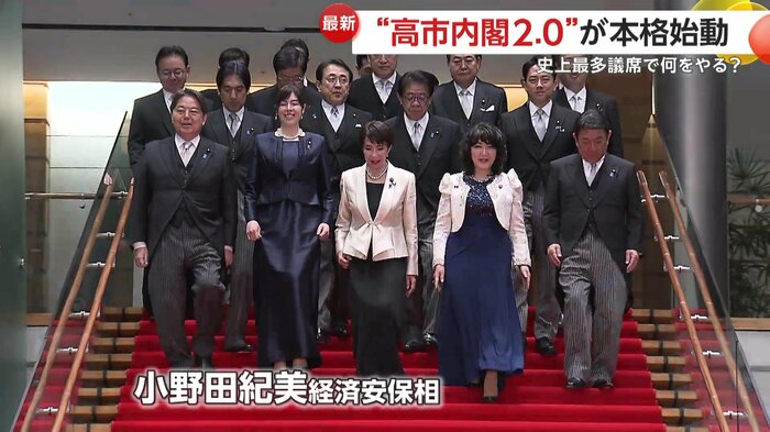 一方、政権発足後の会見で高市首相は「政策の実現に向け政府与党一丸となって、ギアをさらに上げてまいります。本日より高市内閣2.0の始動です」と強調した。