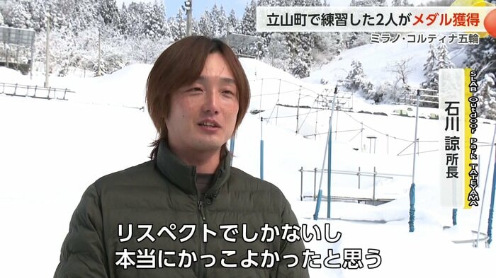 また、男子スロープスタイルで長谷川帝勝選手も銀メダルを獲得。長谷川選手も小学生の頃からこの立山町芦峅寺の施設で練習していてオリンピックメダリストが2人も誕生したことについて石川さんは「史上初の快挙」と喜びを述べていました。
