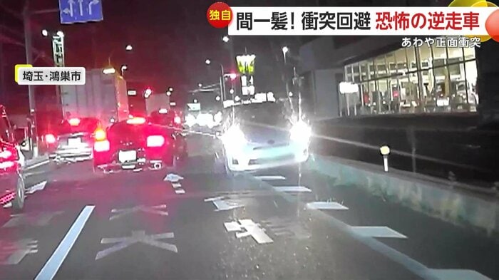 逆走は、埼玉・鴻巣市でもカメラが捉えていた。