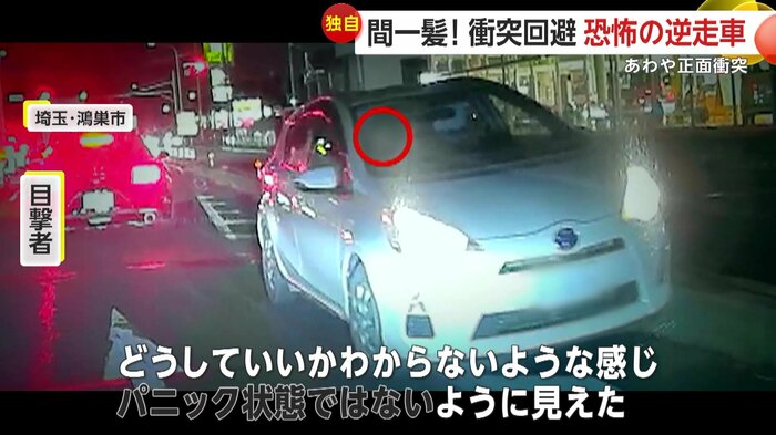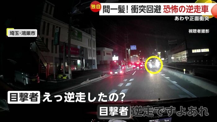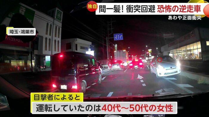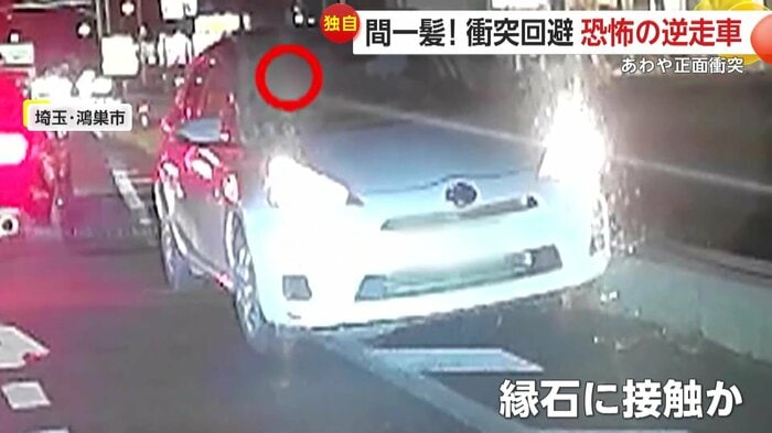 また、埼玉・鴻巣市でも、縁石に接触しながら逆走する車が目撃された。