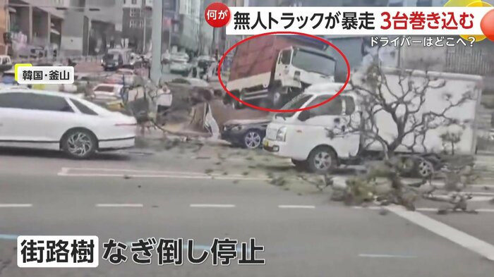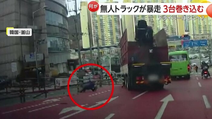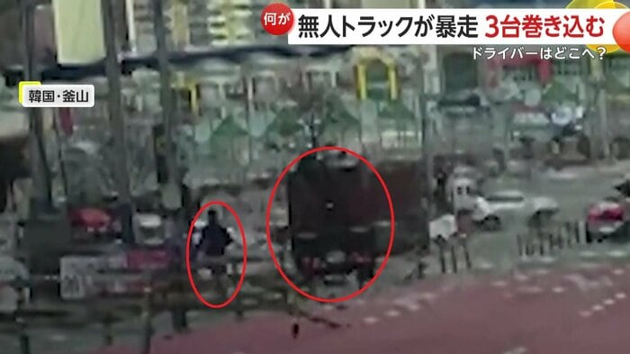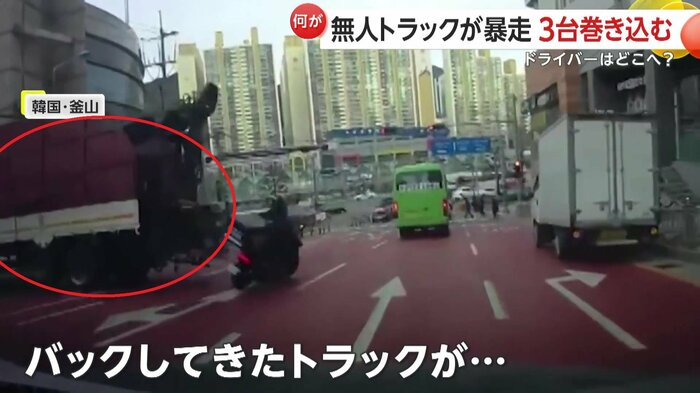 韓国・釜山で撮影されたのは、“無人”の暴走トラックだ。