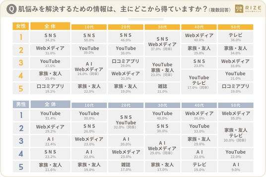 ■2.【肌悩み解決の情報源】女性は「SNS(34.2%)」、男性は「YouTube(31.4%)」が最多回答