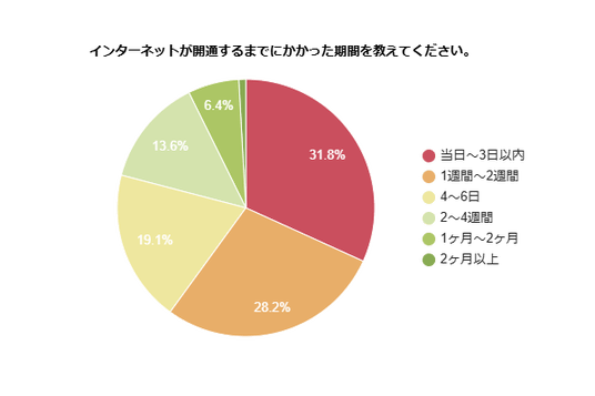 31.8%の人が「当日~3日以内」に開通できたと回答