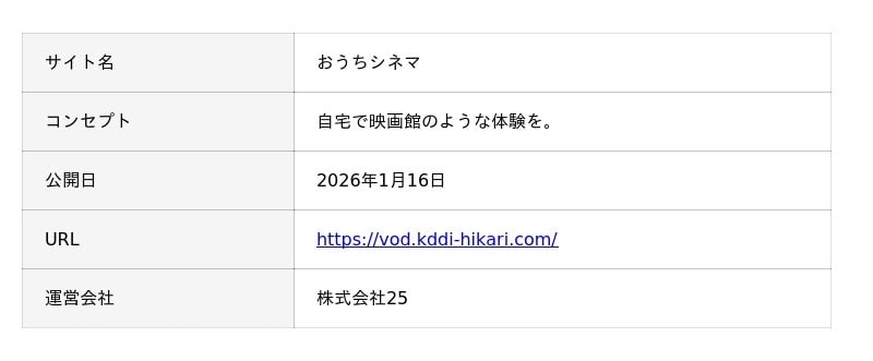 『おうちシネマ』は、株式会社25が運営する動画配信サービス(VOD)の情報メディアです。