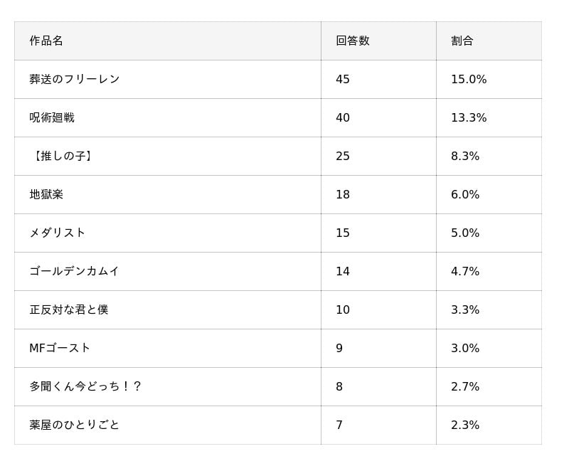・今期おすすめアニメ1位は「葬送のフリーレン」(15.0%)