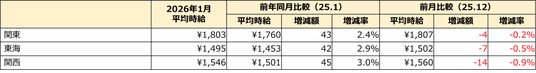 - 三大都市圏の平均時給、2025年12月度に続く過去最高を維持。- 旅行シーズン、新生活シーズンに向けた求人の登場で時給相場が上昇。