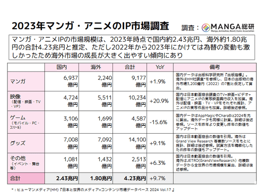 ・その他、補完する情報としてゲーム売上や海外マンガのランキングなどを参照