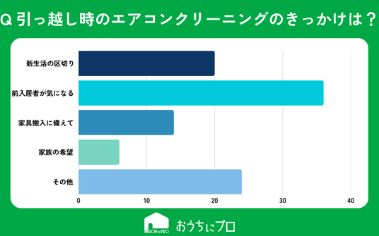 - 引っ越し時のエアコンクリーニングに至った理由は「前の入居者の利用が気になった」。