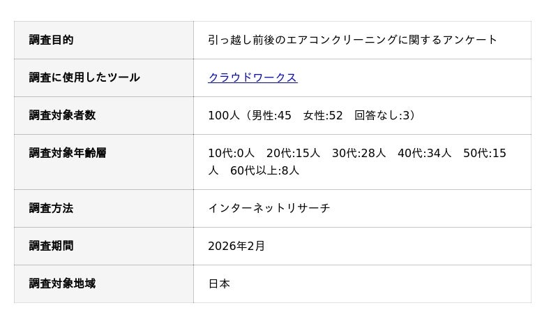引っ越し前後のエアコンクリーニングに関するアンケート調査の概要
