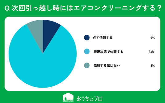 - 次回引っ越し時のエアコンクリーニングについては8割のユーザーが「状況次第で依頼する」。