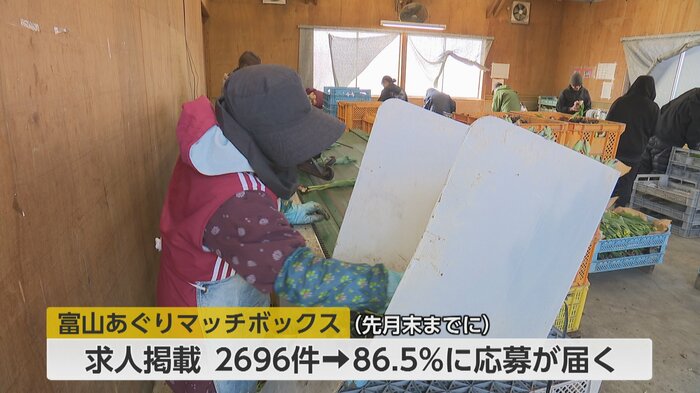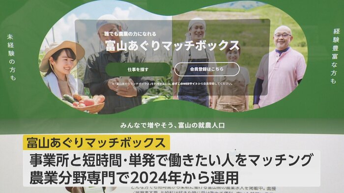 県は2024年から事業所と単発で働きたい人をマッチングさせる「農業専門」の求人サービス「富山あぐりマッチボックス」を運用し、手応えを感じている。これまで掲載された2696件の求人に対し、マッチング率は86%という高い実績を誇る。