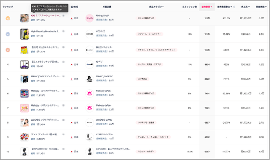 ※ FastMossはTikTok Shopの第三者分析ツールであり、TikTok Shopにおける公式データとは一部数値が異なる場合がございます。当ツールから提供される情報について、当社はその完全性や正確性を保証するものではありません。ご利用にあたっては十分にご留意ください。