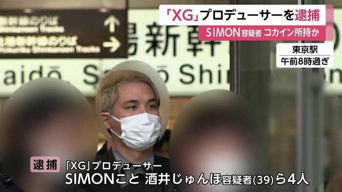 「XG」のプロデューサー・SIMONこと酒井じゅんほ容疑者(39)ら4人は、愛知県内のホテルで、コカイン1袋を持っていた疑いがもたれている。