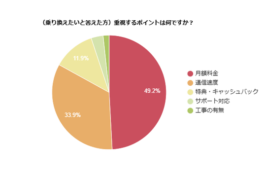 乗り換えにおいて「月額料金」を重視する方が約半数