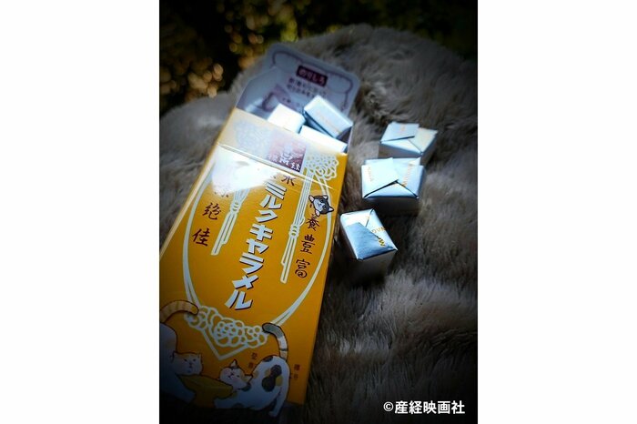 棚の中央には「ミルクキャラメル」が鎮座し「チョコボール」がその脇を固める。