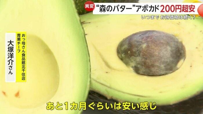 東京・足立区の「おっ母さん食品館北千住店」では、アボカドが1個150円(税込み)で販売されていた。買い物客から漏れたのは、この安さを歓迎する声だ。