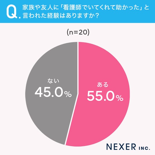 続いて、家族や友人から「看護師でいてくれて助かった」と言われた経験があるかを聞いてみました。