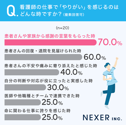 株式会社NEXER・看護師の仕事のやりがいと働き続ける理由に関する調査