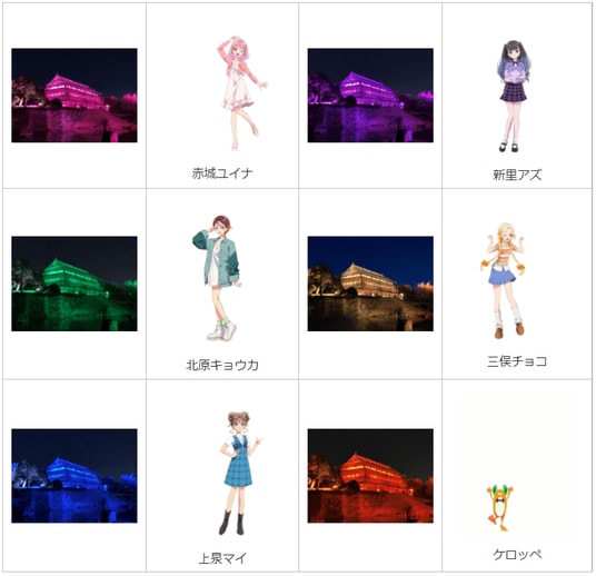 - 臨江閣のライトアップ(放送期間中、キャラクターカラーによる演出)