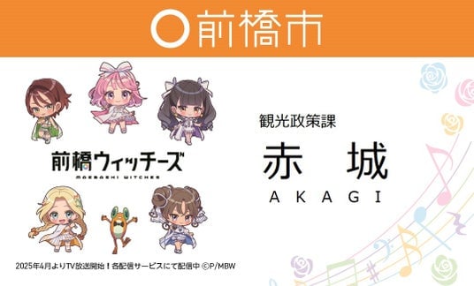 前橋市では、アニメ作品「前橋ウィッチーズ」を本市の魅力発信及び地域の活性化(回遊促進)のコンテンツとして、観光・交通・商業・情報発信など他分野にわたる連携施策を実施しています。
