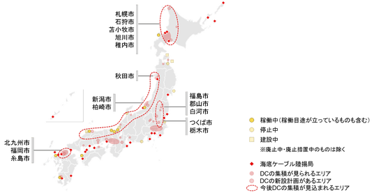 これまでDCは、低遅延需要や通信・人材の集積を背景に、東京圏・大阪圏を中心とする都市部に集中してきました。しかし近年、生成AI向けDCの電力消費量が急増する中で、都市部では電力確保が難しくなり、脱炭素対応への要請も強まっています。こうした状況は、従来の都市集中型立地の限界を浮き彫りにしています。