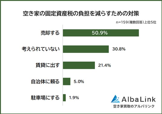 今回、株式会社AlbaLink( https://albalink.co.jp/ )が運営する訳あり物件買取プロ( https://wakearipro.com/ )は、空き家を所有している159人を対象に「空き家の固定資産税」についてアンケート調査を実施しました。