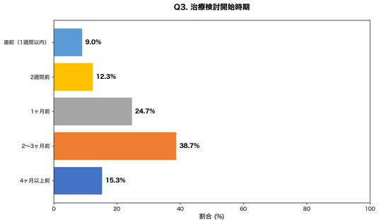 ・治療検討開始は「入社2~3ヶ月前」が38.7%で最多、準備期間の重要性が浮き彫りに