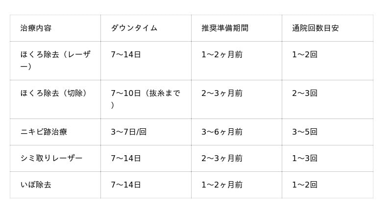 また、治療後の経過には個人差があることも考慮が必要です。特に色素沈着が起こりやすい肌質の方は、治療痕が落ち着くまでに予想以上の時間がかかることもあります。こうした不確実性を考慮すると、新生活の2~3ヶ月前、つまり4月入社であれば2月中には治療を開始することをお勧めします。