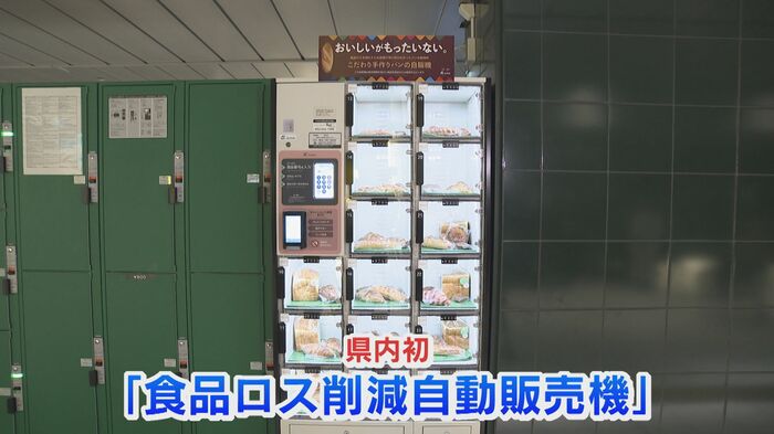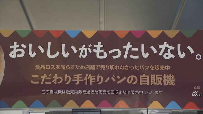 自販機には『おいしいがもったいない。食品ロスを減らすため店舗で売り切れなかったパンを販売中』と記されている。