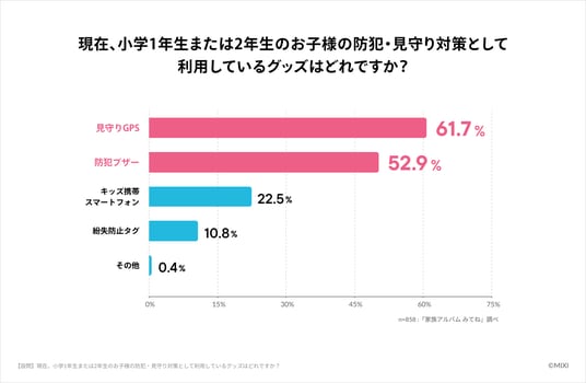 株式会社MIXI(東京都渋谷区、代表取締役社長 上級執行役員 CEO:木村 弘毅)は、この春に小学校へ入学する新一年生の保護者の防犯グッズ選びを支援するため、GPS端末や防犯ブザーを実際に利用している小学1~2年生の保護者1,545名を対象に、利用実態や課題、そして経験者だからこそわかる、本当に必要な機能を明らかにする調査を実施しました。