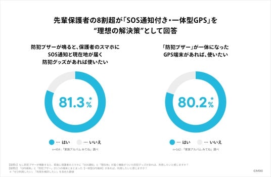 保護者のスマホにSOS通知(現在地通知)が届く機能」を、80.2%が「GPS端末と防犯ブザーの一体型端末」を求めていることがわかりました<図1>。