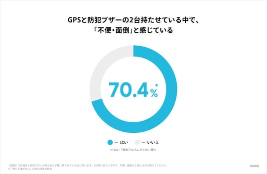 ・同不安層のGPSと防犯ブザー併用者の70.4%で、「2台持ち」は「不便・面倒」。