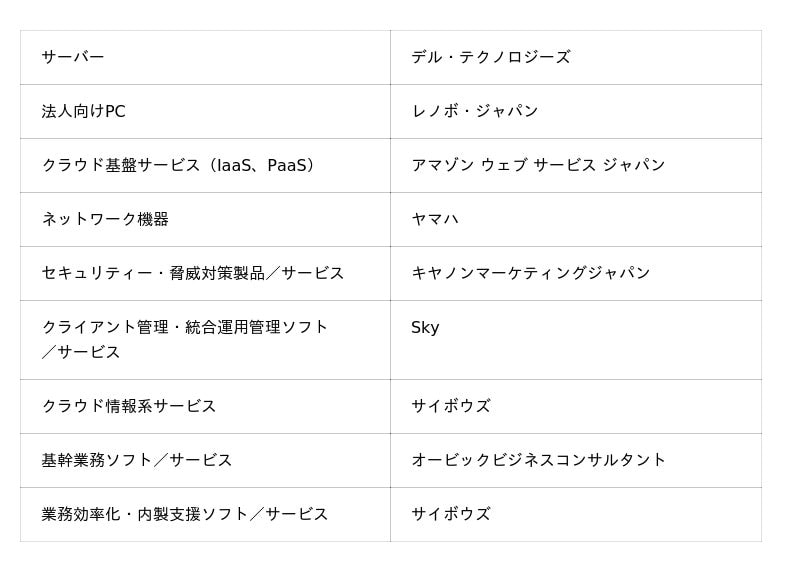 各部門で1位を獲得した企業は以下の通りです。