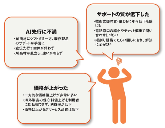 今回の調査では、ITベンダーによるAI商材の「推し」が過熱する中、その商材を売り込む側であるはずのパートナー企業が不満を抱いていることも浮き彫りとなりました。