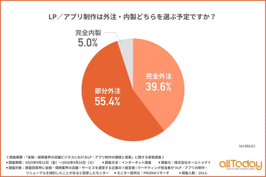 株式会社オールトゥデイ(本社所在地:埼玉県さいたま市)は、金融・保険業界の店舗・サービスを運営する企業の1.経営者2.マーケティング担当者かつLP/アプリの制作・リニューアルを検討したことがある方を対象に、「金融・保険業界の店舗ビジネスにおけるLP・アプリ制作の課題と成果」に関する実態調査を実施しましたので、その結果を公表します。