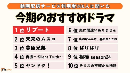 「現在放送中・配信中の今期ドラマでおすすめしたい作品」では、「リブート」が20.0%(60人)で圧倒的1位を獲得しました。