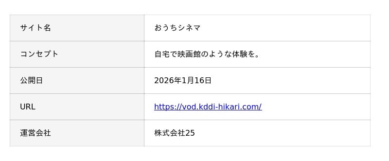 『おうちシネマ』は、株式会社25が運営する動画配信サービス(VOD)の情報メディアです。