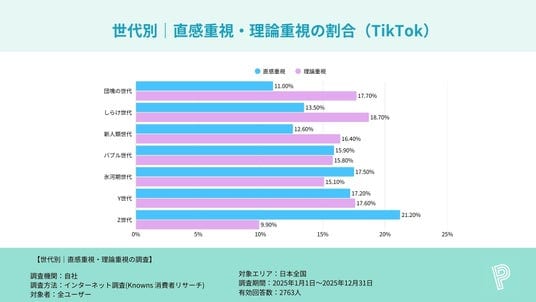 2.【Z世代】Instagram・TikTok・X・Facebookで“直感重視”が突出、理論派は1桁台も