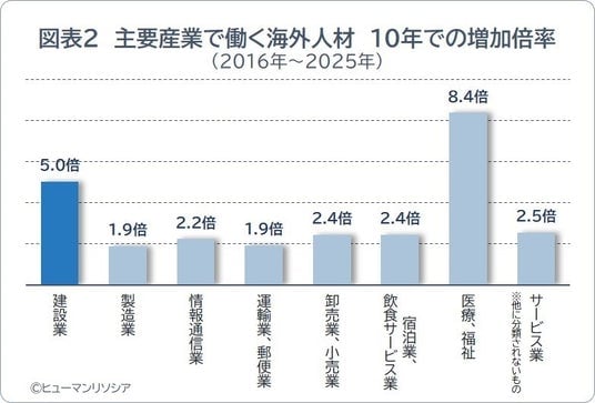 - 建設業で働く海外人材は20.6万人、直近10年で約5倍に拡大