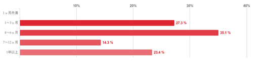「4~6ヶ月」と回答した人が35.1%で最も多く、次いで「1~3ヶ月」が27.3%、「1年以上」が23.4%という順となった。