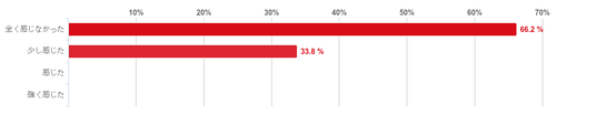 「全く感じなかった」と回答した人が66.2%と約7割となり、次いで「少し感じた」との回答が33.8%だった。また、「強く感じた」と回答した人はおらず、回答者の多くが勧誘を受けたと強くは感じていないことがわかった。