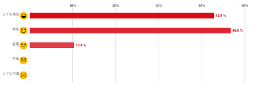 「満足」と回答した人が46.8%で約5割を占め最も多く、「とても満足」(42.9%)との回答と合わせて、回答者の9割が「プライバシーへの配慮」について満足しており、前の質問の「院内の清潔感・雰囲気の満足度」と同様に評価が高いことがわかった。反対に、こちらも「不満」や「とても不満」と回答した人はひとりもいなかった。