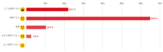 料金に対して「納得できる」と感じたか、選択肢から1つ選んでもらった。